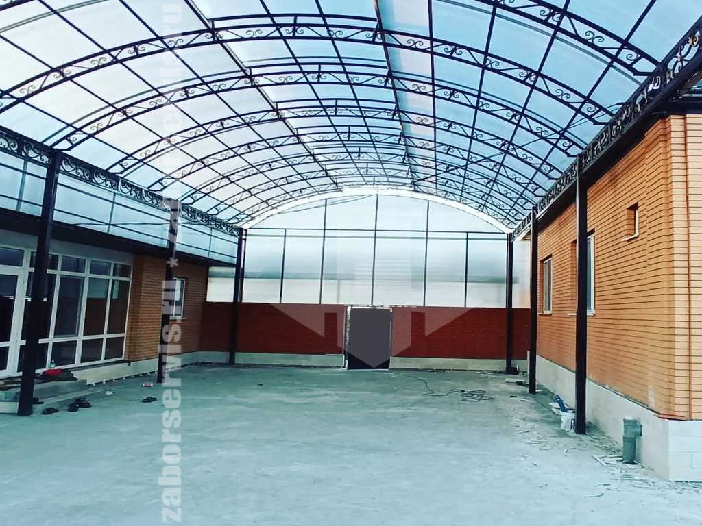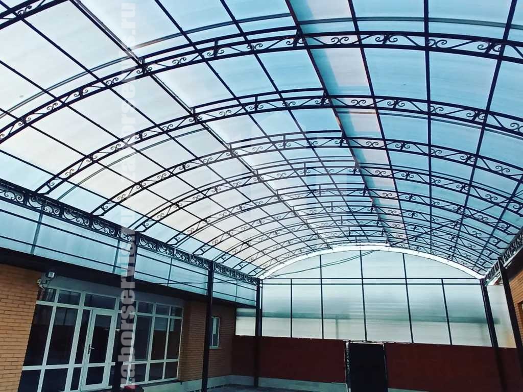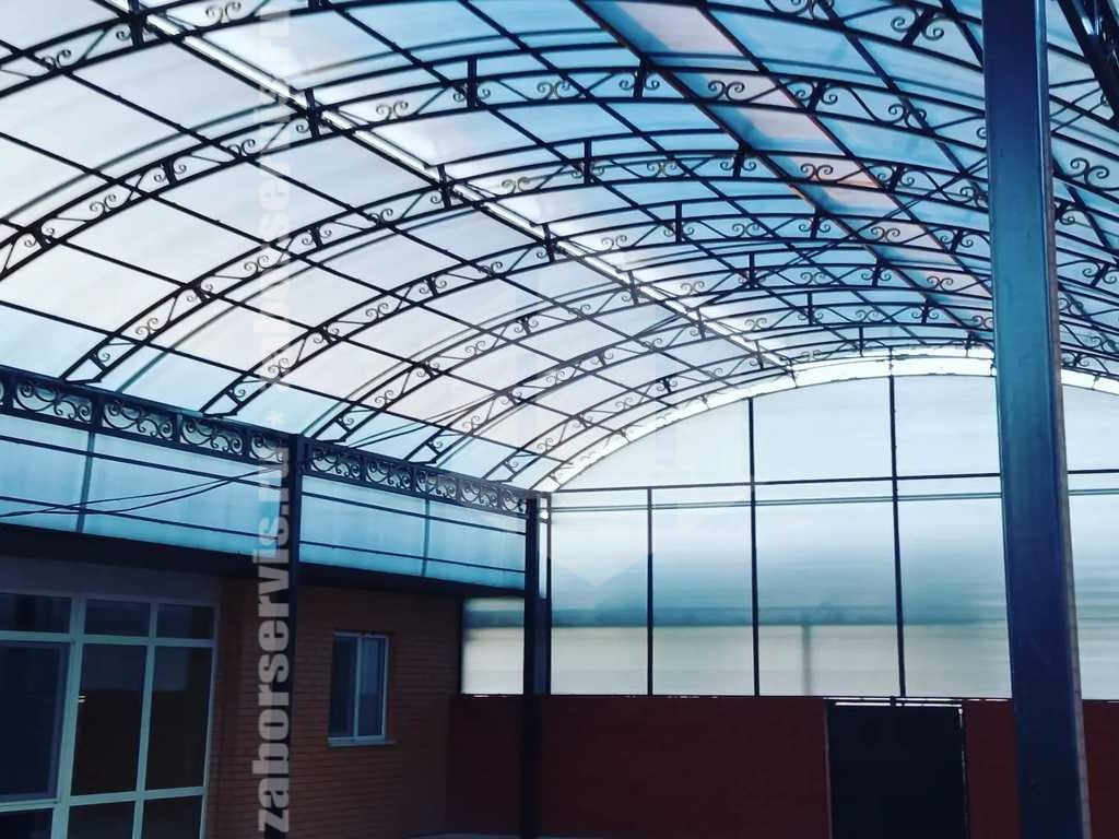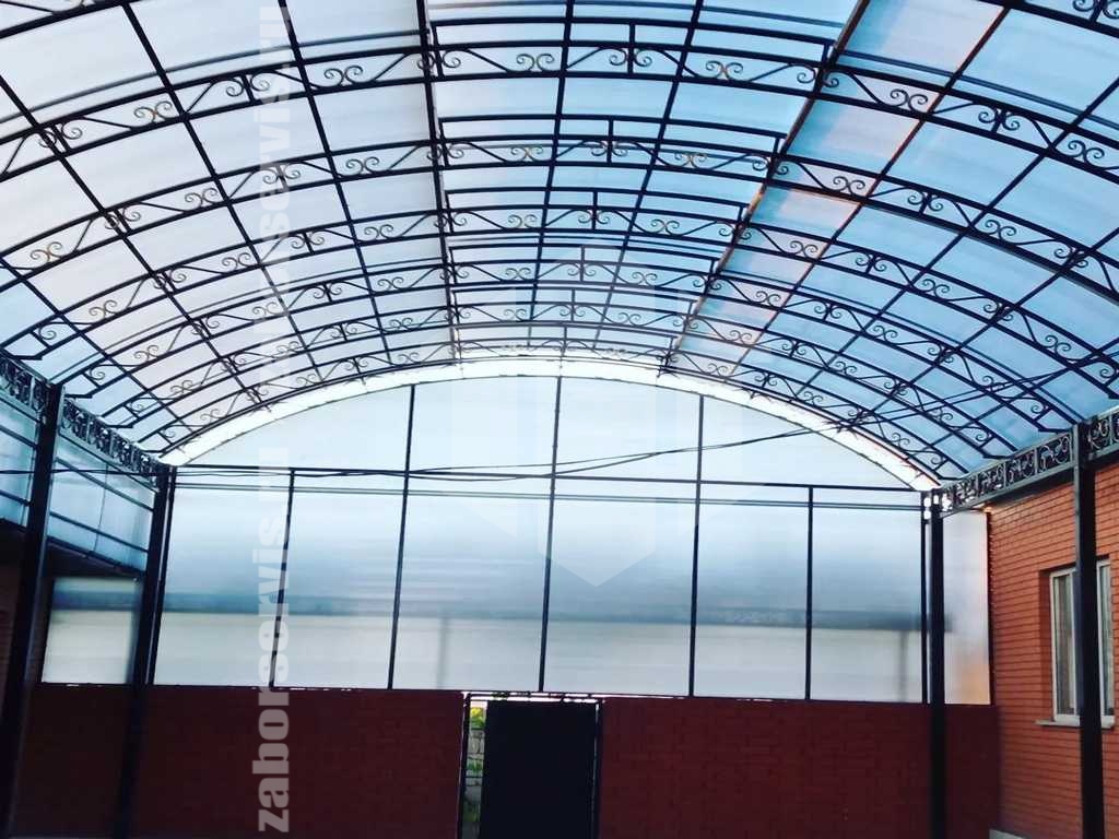 Если вы выберете крышу из профлиста, то под ней будет довольно темно, и вам придётся дополнительно устанавливать освещение. Используя поликарбонат, вы получаете сразу два преимущества: защиту от непогоды и естественное освещение.