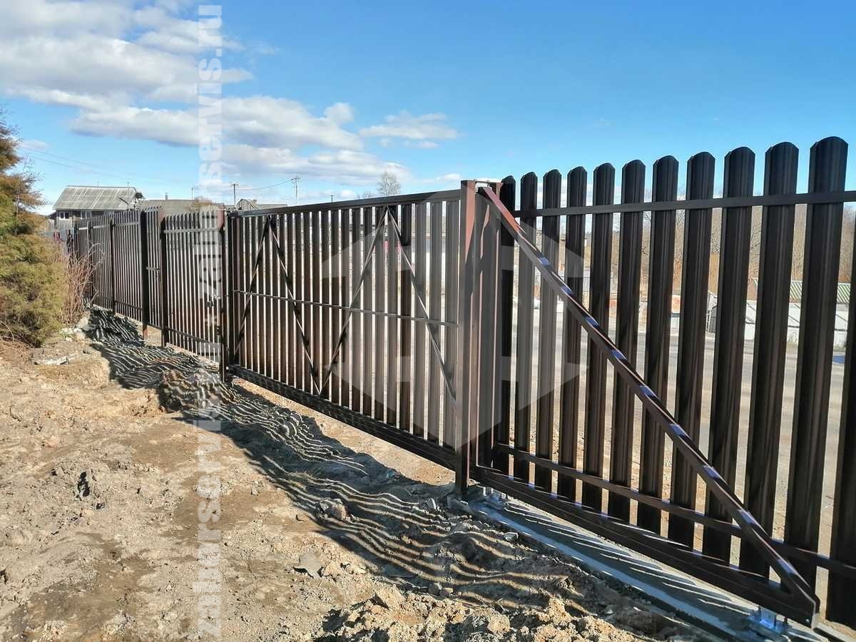 Забор из евроштакетника с утрамбовкой щебнем 162 метра