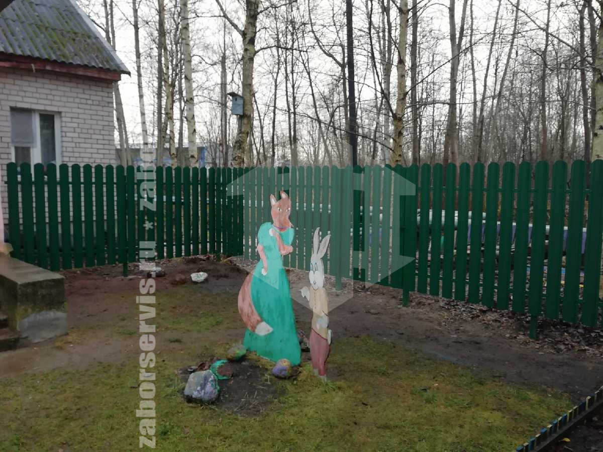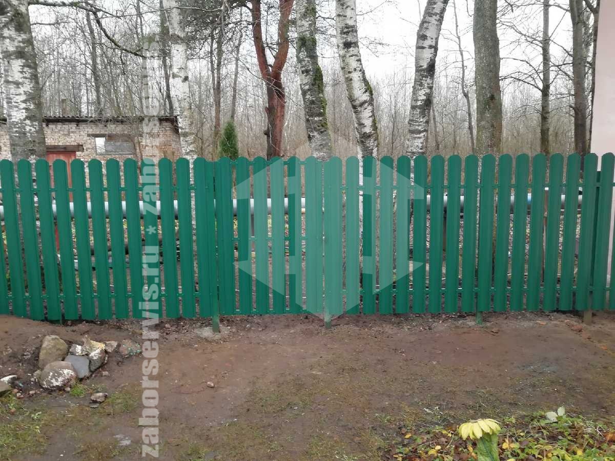 Забор из металлического штакетника зеленый